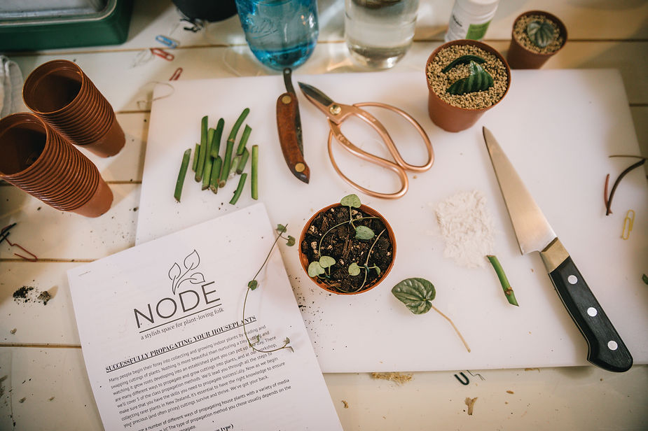 Peperomia are super easy to propagate and can be propagated with stem cuttings or leaf cuttings. Stem cutting is the most popular method, will generally have the best results, and can be performed with all species of peperomia. We also often propagate just the leaves of peperomia (something you can learn in person at our workshops), and once they root, they often produce the tiniest little pep leaves straight from the edge of the leaf - so cute!