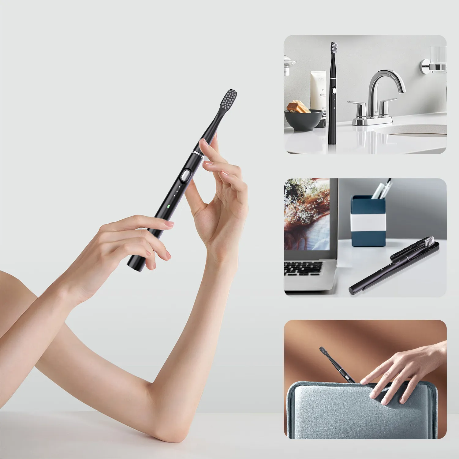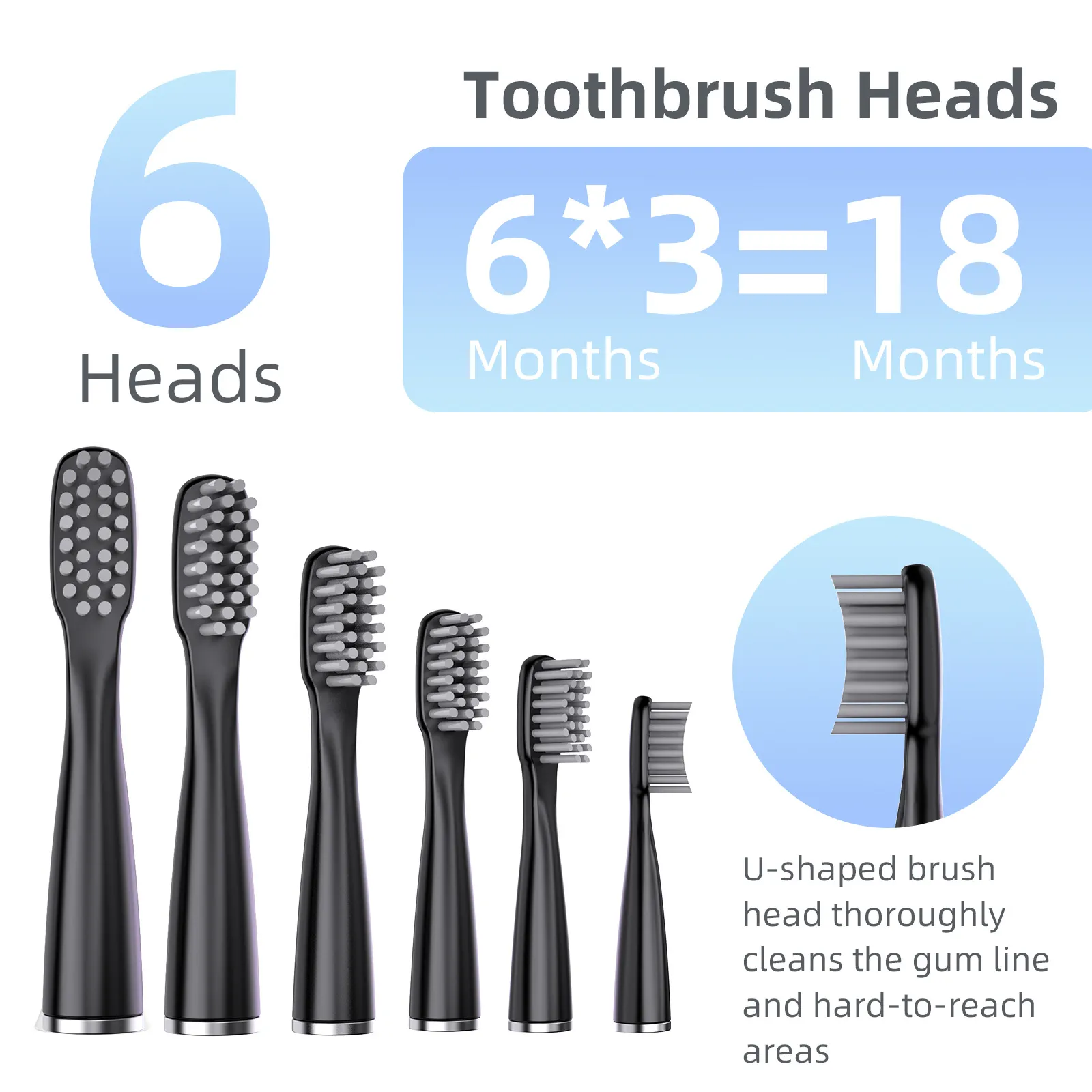 Electric toothbrush X 1PC Brush head X 6PCS Portable case X 1PC Charging cable X 1PC Instruction Manual X 1PC Product Image: