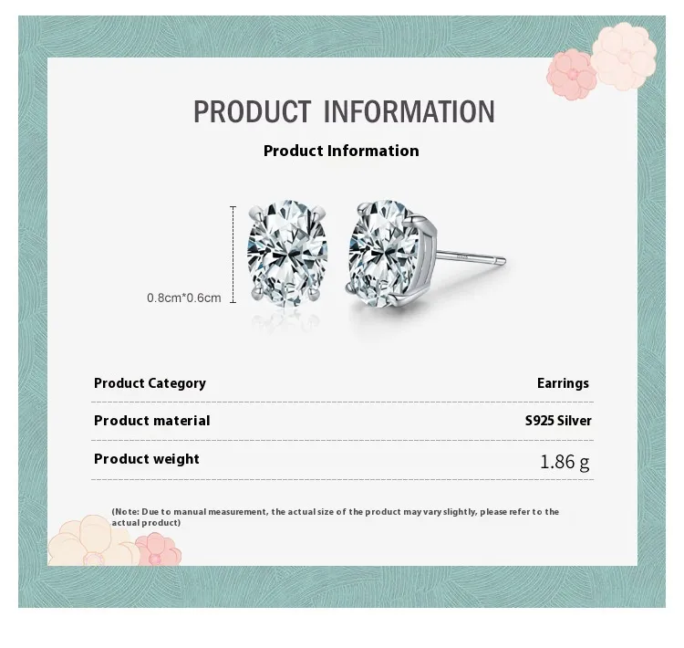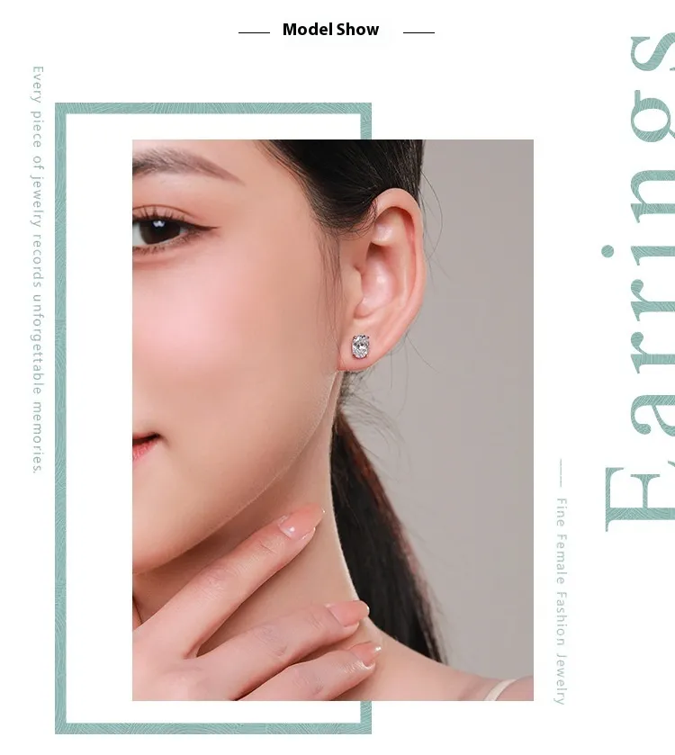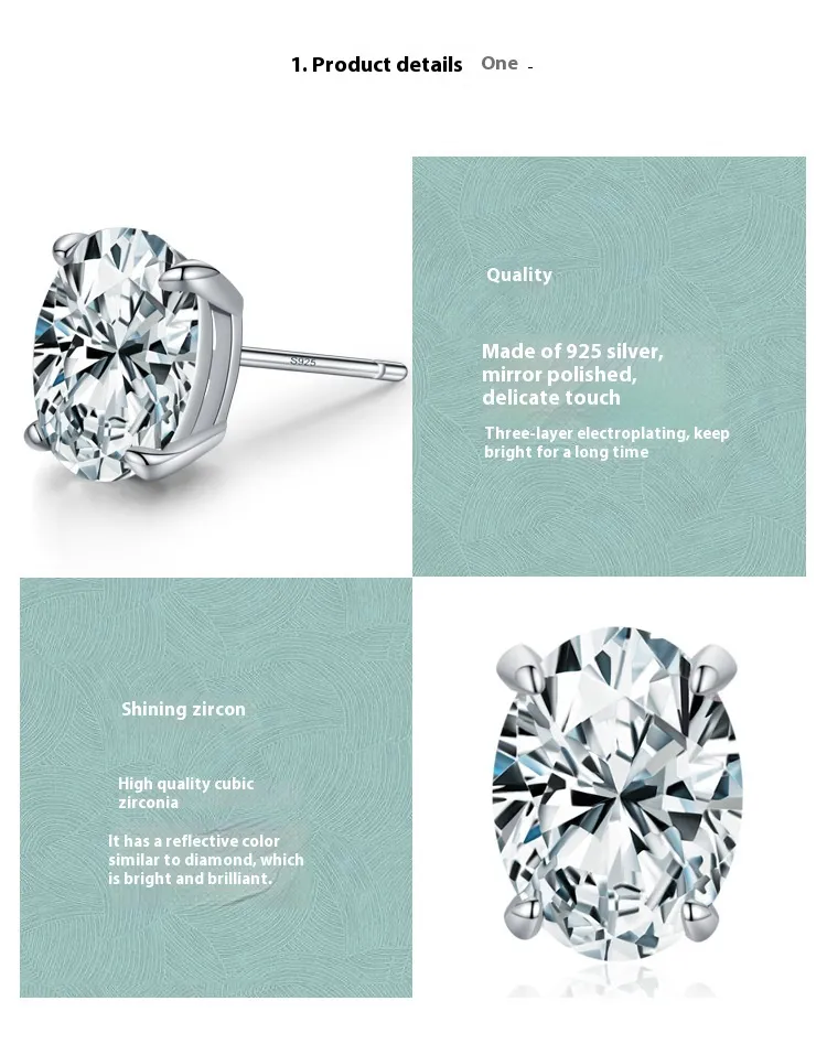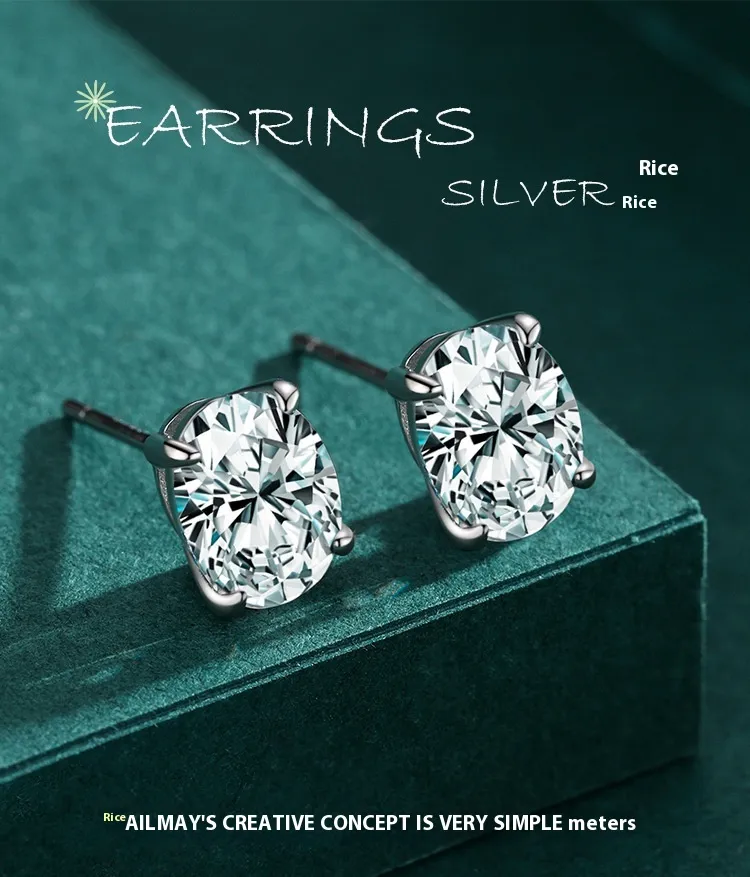 S925 Sterling Silver Oval Artificial Diamond Stud Earrings For Women