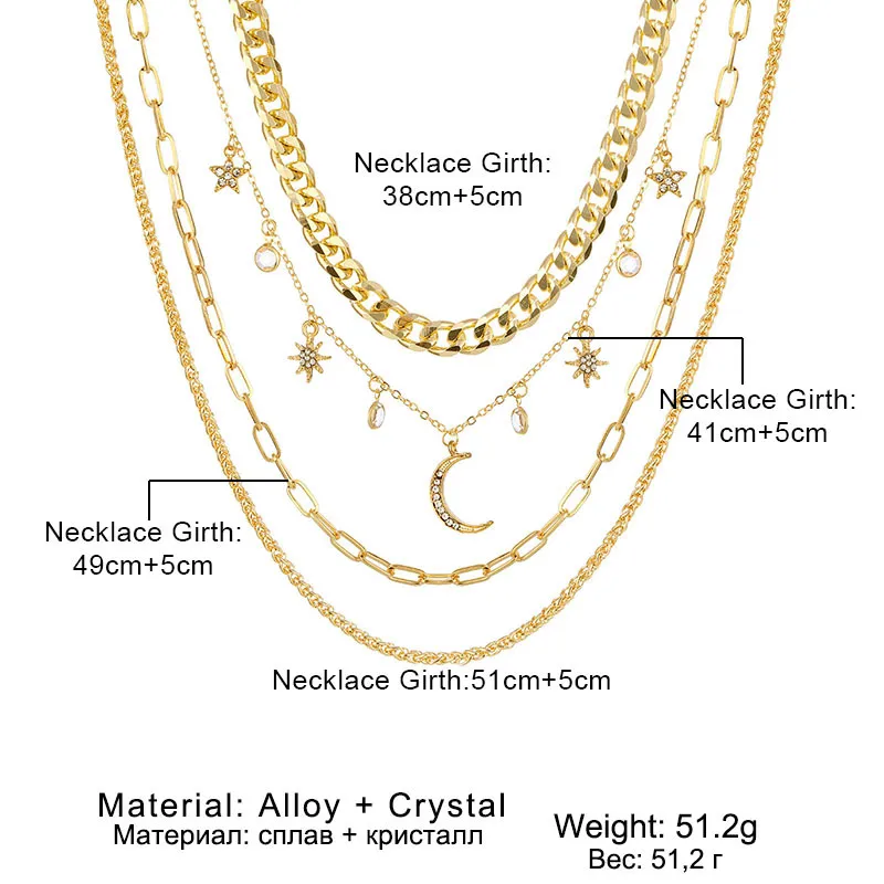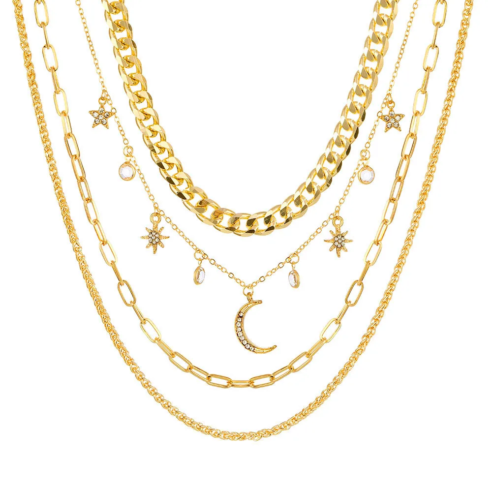 Korean Jewelry World Retro Moon Moon Star Crystal Multilayer Pendant Chain Necklace Cross-Border Exclusive Necklace