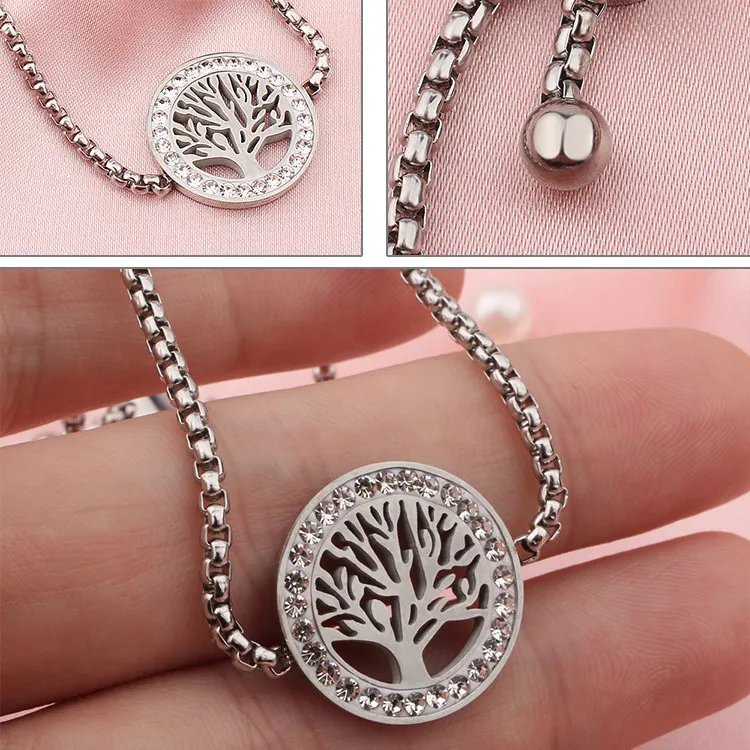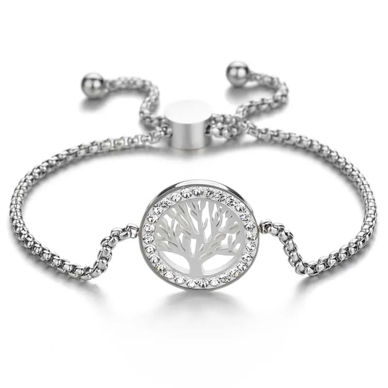 New Stainless Steel Adjustable Heart Tree Bracelets Women Steel CZ Stone Family Bracelet Mothers Day Gift