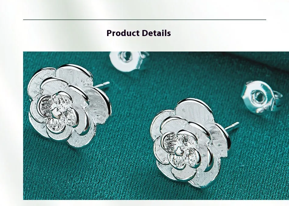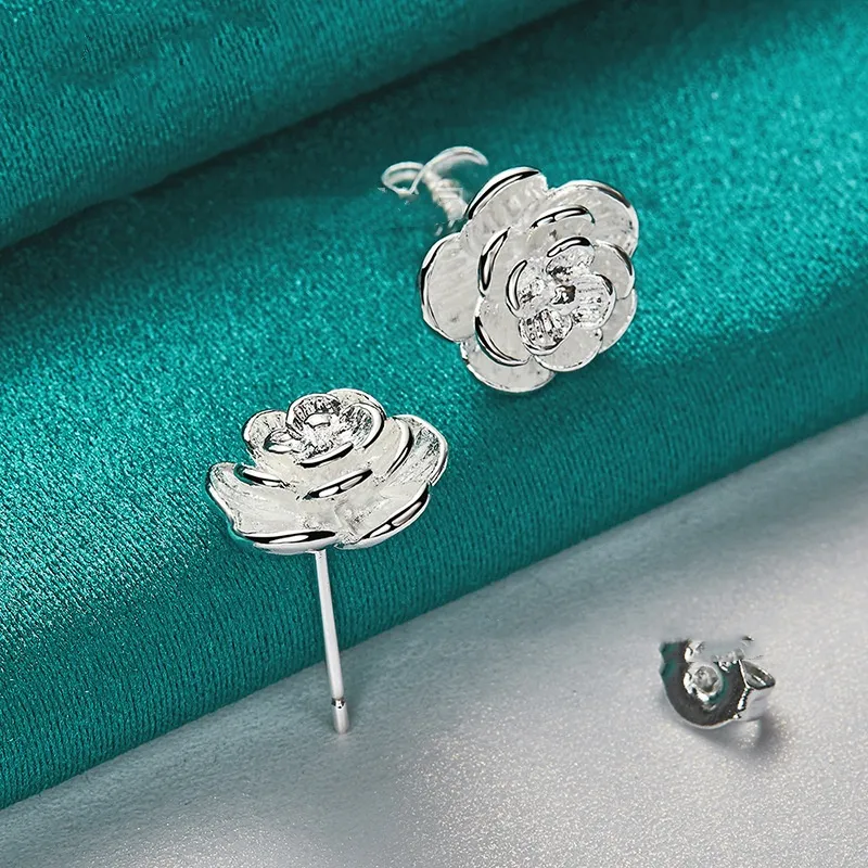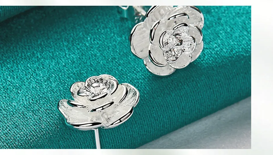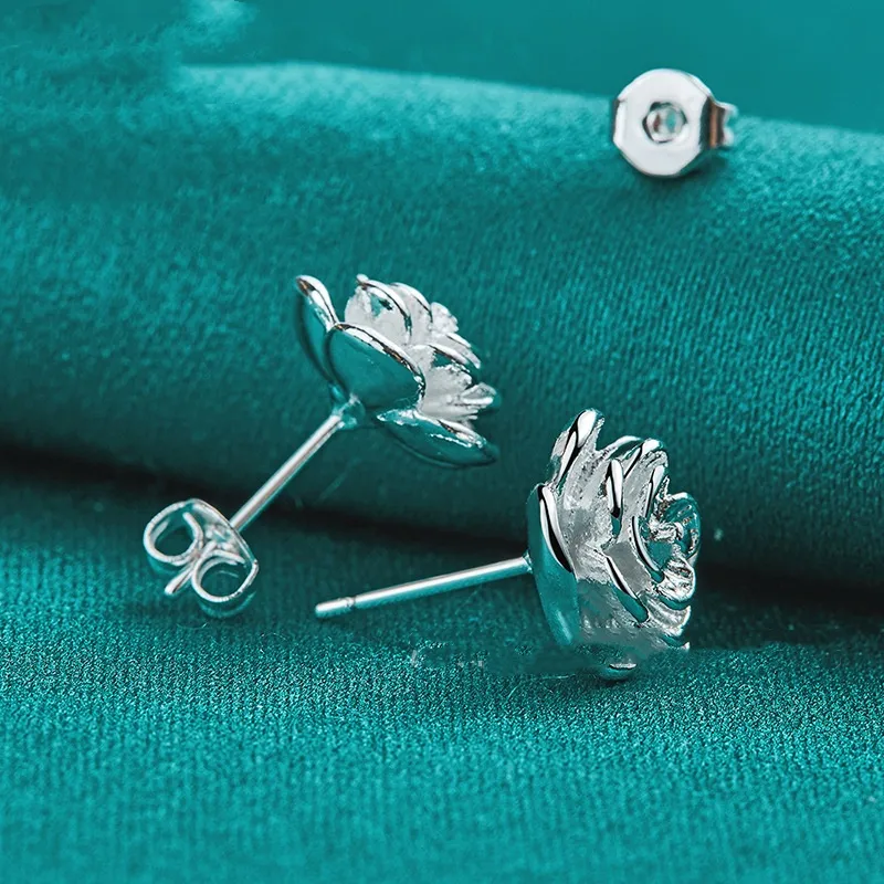Silver Rose Stud Earrings Female Accessories