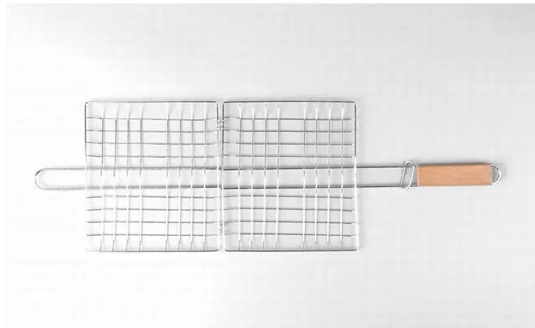 Stainless Steel Outdoor Grill Wooden Handle Square