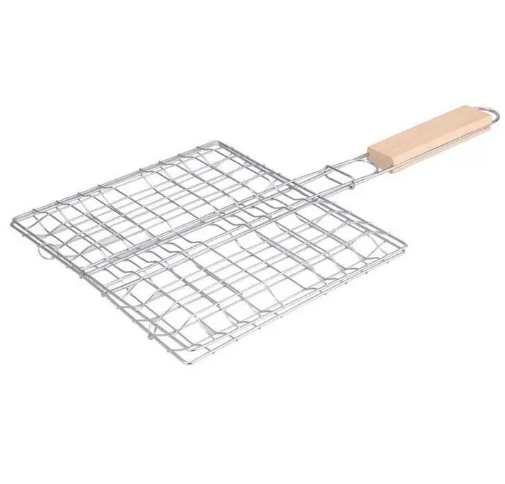 Stainless Steel Outdoor Grill Wooden Handle Square