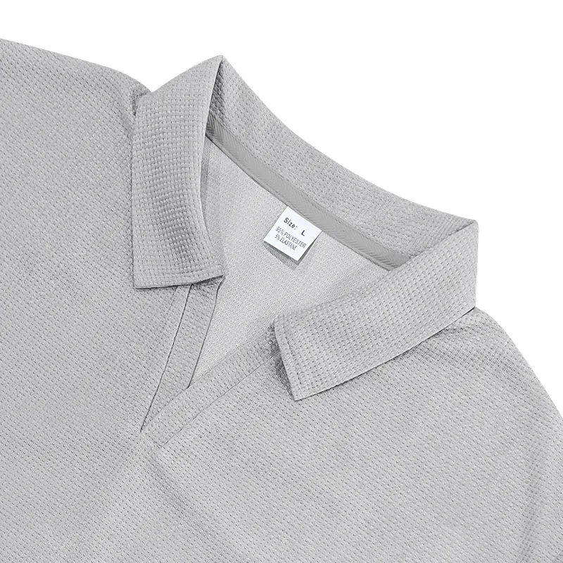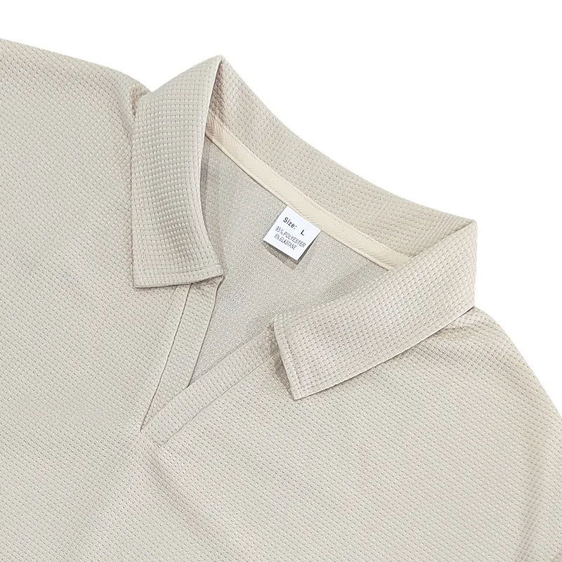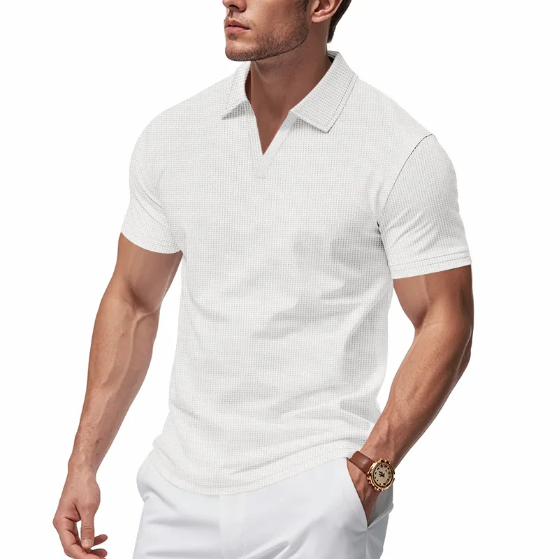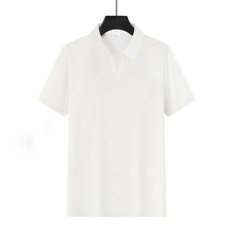 Summer Men’s Loose Leisure Sports V-neck Waffle Polo Shirt – Casual & Comfortable
