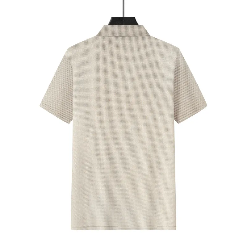 Summer Men's Loose Leisure Sports V-neck Waffle Short Sleeve Lapel Polo Shirt Men