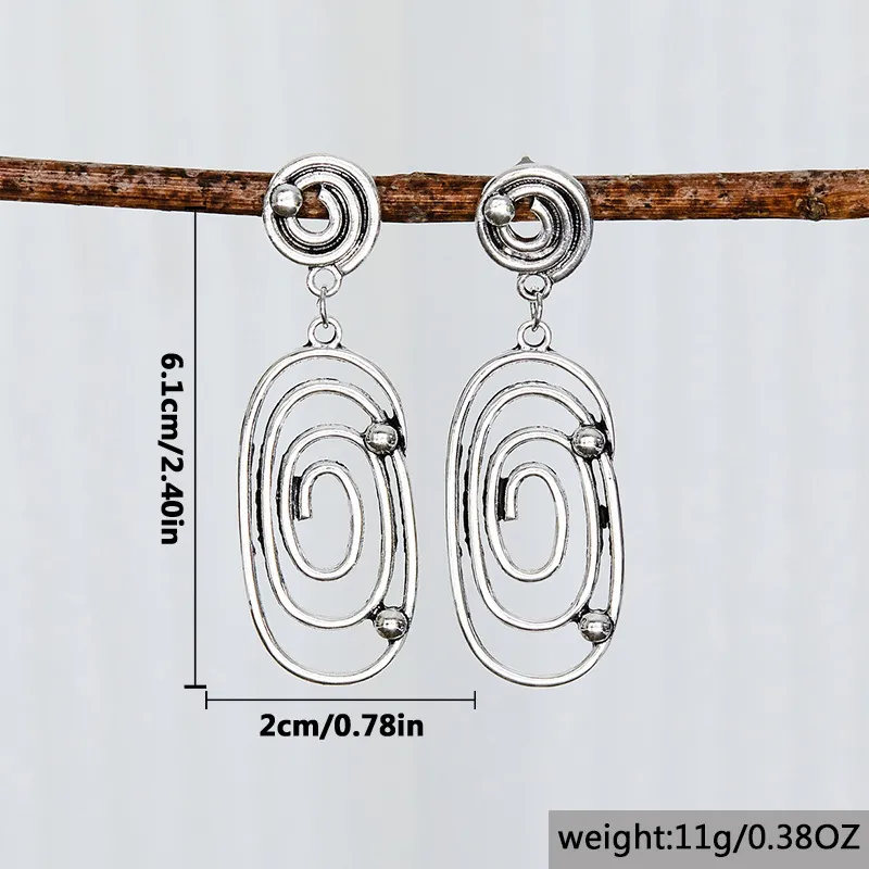 Vintage Bohemian Oval Back Hollow Mosaic Pendant Earrings