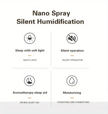 This humidifier features an ambient light option that creates a soft, calming glow in your room. The gentle lighting adds to the relaxing atmosphere, helping to improve your mood, promote rest, and enhance the room's aesthetic. The light can be adjusted to different brightness levels, making it perfect for night-time use, creating a warm and inviting space without disturbing your sleep. Ideal for bedrooms, living rooms, or nurseries, this feature is especially soothing for babies, helping them feel secure and comforted.