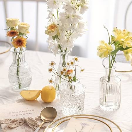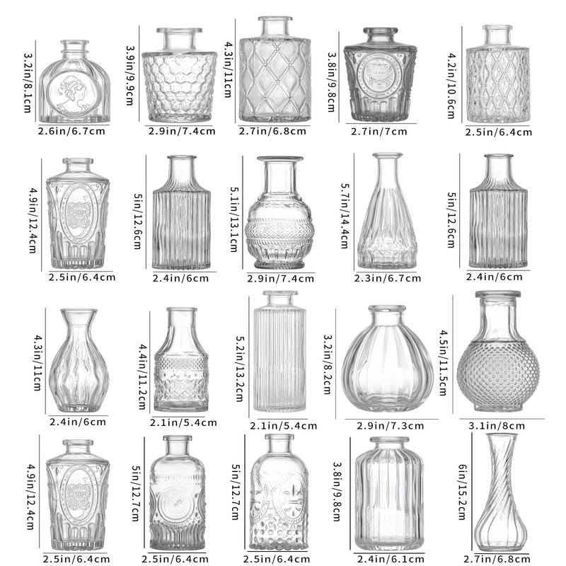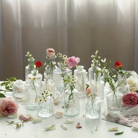 The 10/20pcs Transparent Simple Relief Creative Glass Vase Set is designed to add a touch of elegance and creativity to your home or event. Whether you're hosting a wedding, celebrating a special occasion, or looking to enhance the beauty of your dining table, this vintage-inspired glass vase set is the perfect addition to your décor. Its timeless design and transparent simplicity make it a versatile choice for any space, adding sophistication and charm.