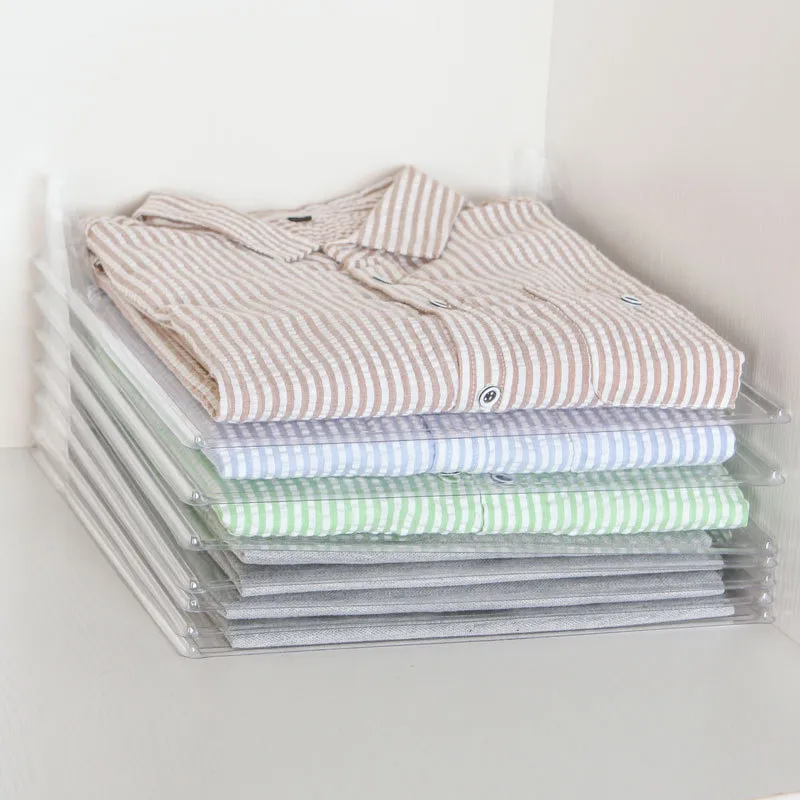 Clothes organization system made easy — Bye-bye messy drawers and lost shirts! lets you stack your clothes neatly and accessibly – and even pull items from the middle without disturbing the stack.