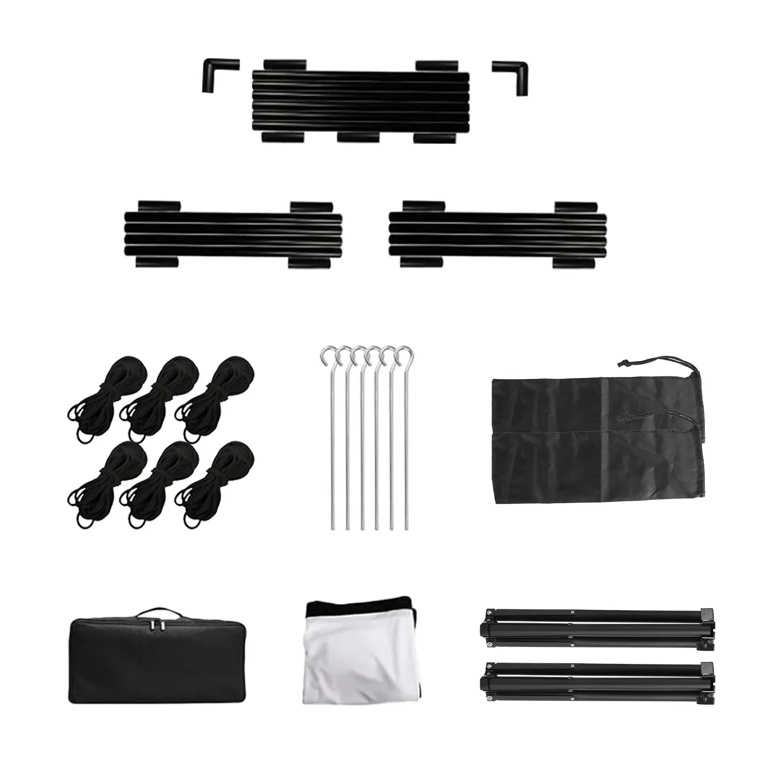 to bend,deform or break. Package also includes grounding nails,ropes and sandbags,adding stability and security even in windy days.