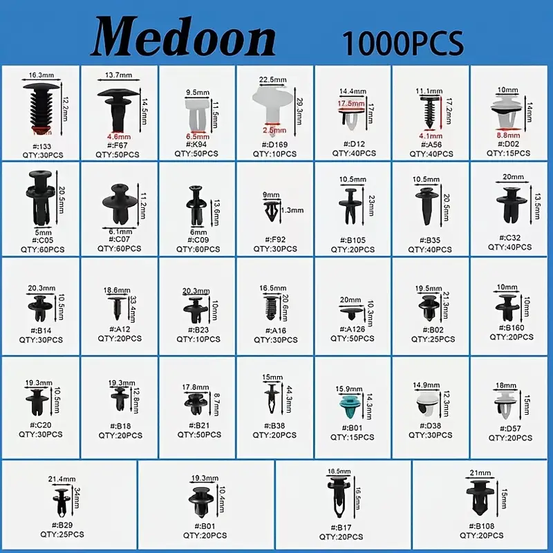 1000pcs Medoon Car Retainer Clips Assortment, PP Material