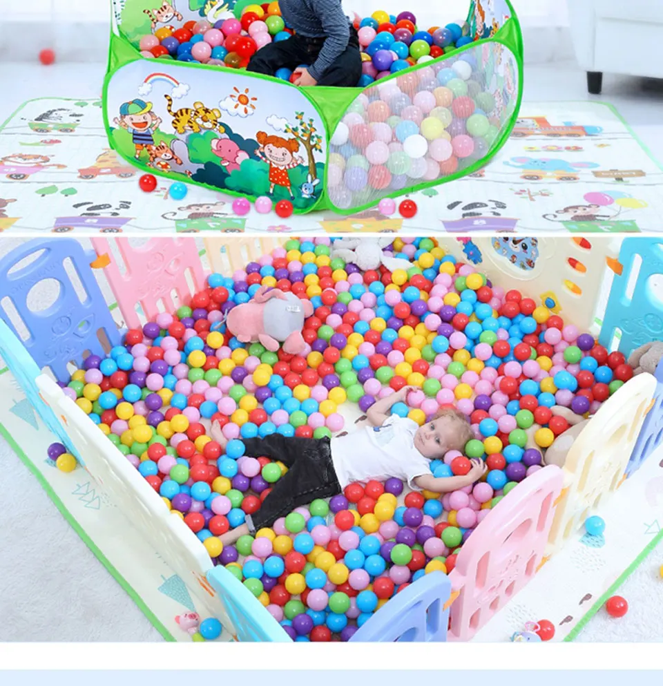 Brighten up playtime with the 10pcs Kids Colorful Ocean Balls, designed to bring fun and safety to your baby’s play environment. Made from soft, eco-friendly plastic, these vibrant balls are perfect for ball pits, water pools, and ocean wave play areas. Ideal for babies and toddlers, these toys promote active play and sensory development.