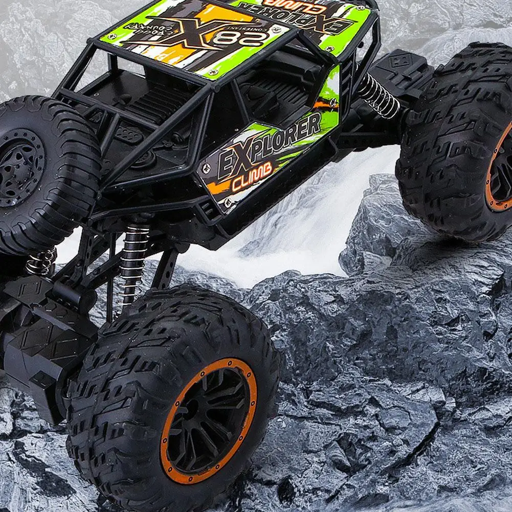 The car’s shock-absorbing suspension and rugged build make it suitable for outdoor play, while its durability ensures it can withstand the elements, whether you're racing through rough terrain or climbing obstacles.