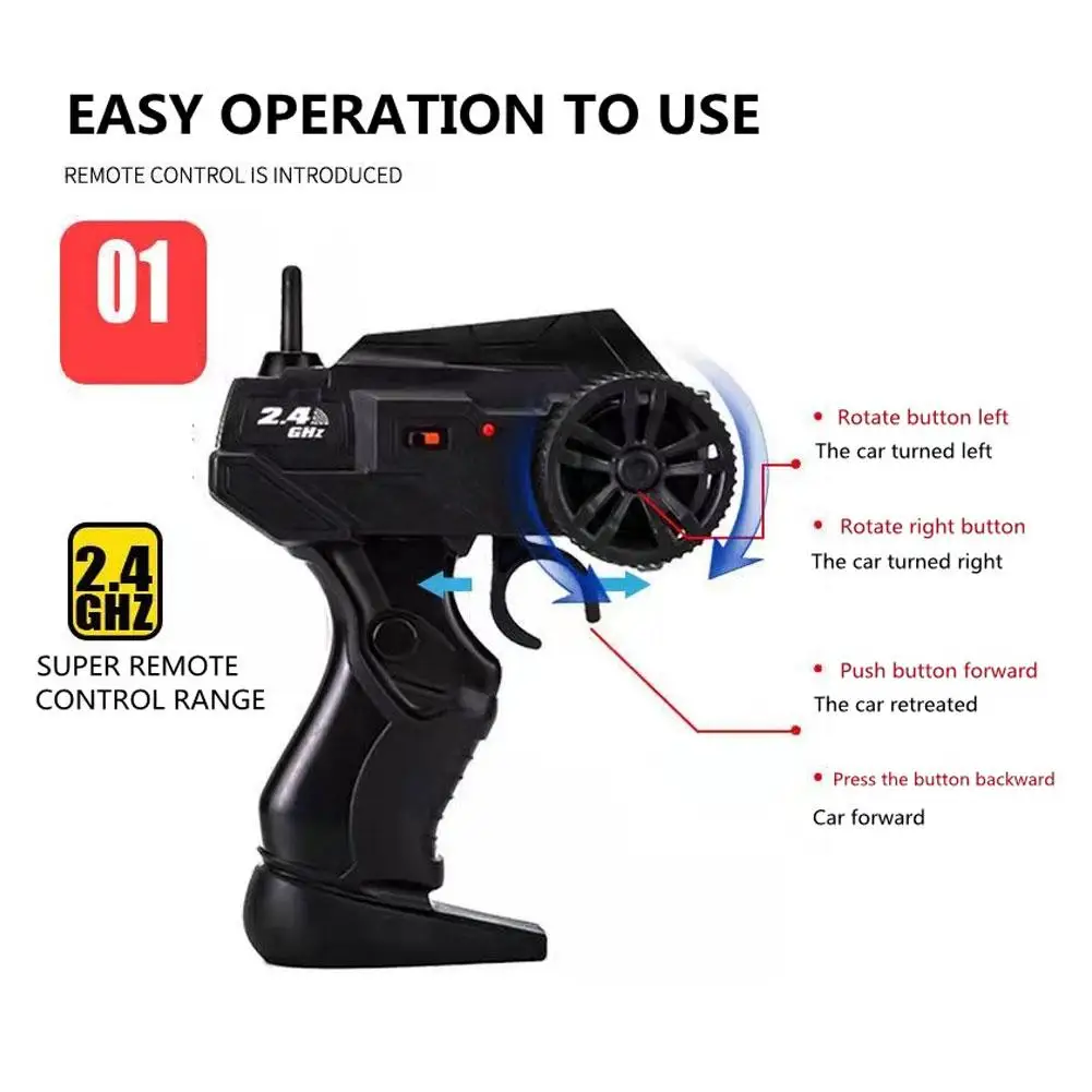 The 1:16 scale and easy-to-use remote control make this RC car suitable for both beginners and kids. The responsive controls and smooth operation ensure a fun and safe experience, even for first-time users.