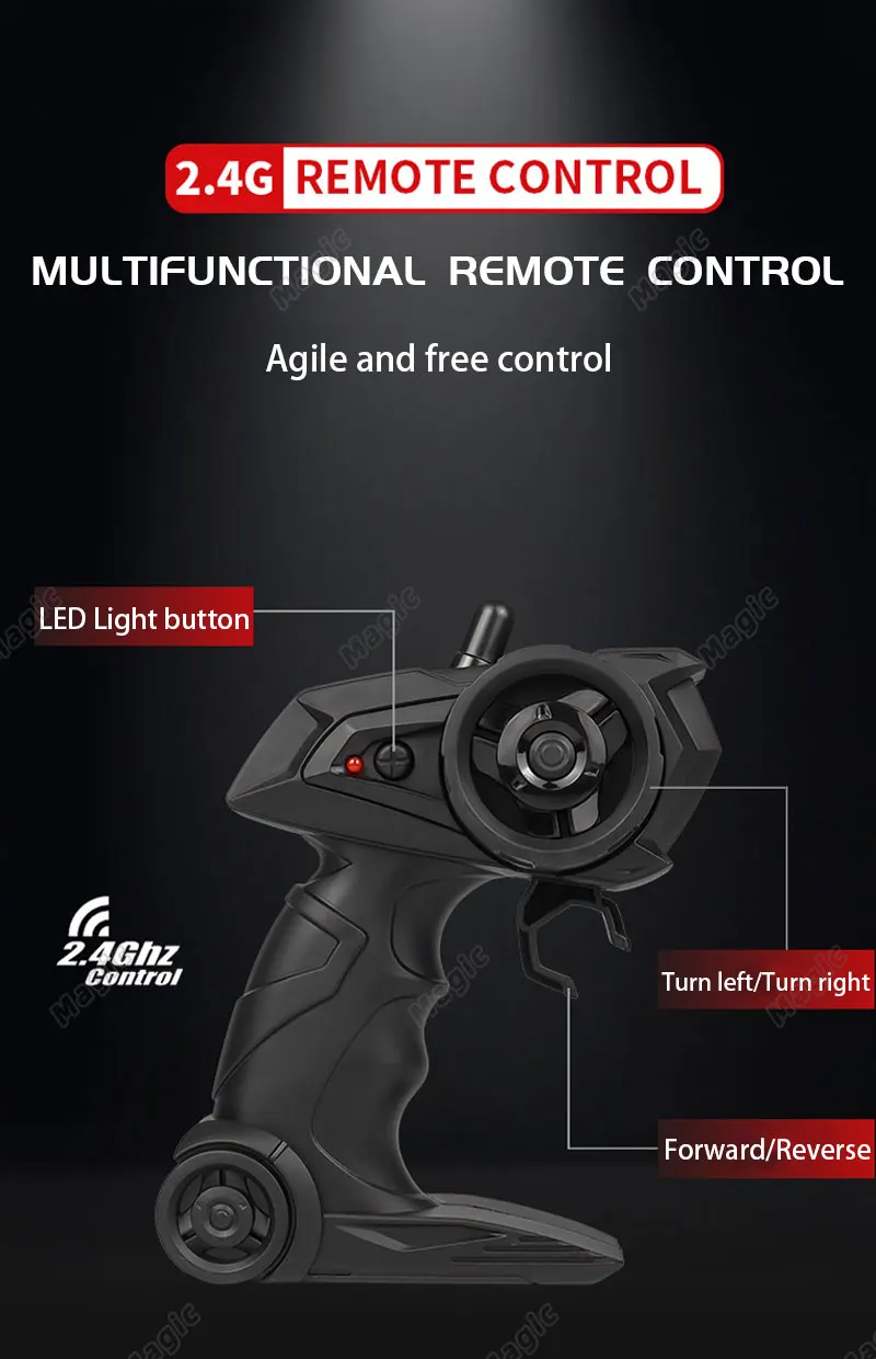 This 1:16 scale RC car features 2WD and LED lights, achieving speeds up to 20KM/H. Designed for high-speed off-road climbing, it operates on a 2.4G frequency for precise control. Perfect for boys, girls, and kids, this remote control car offers thrilling outdoor fun.