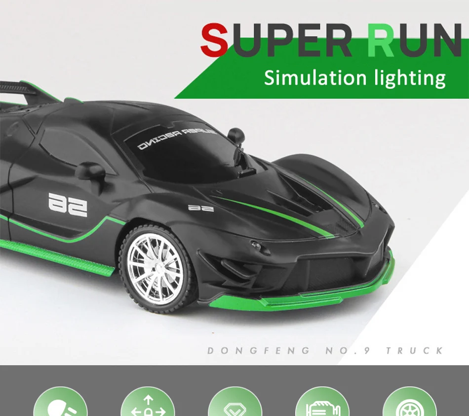 This 1:18 scale RC sports car features LED lights and operates on a 2.4G radio remote control. Designed for high-speed racing and drifting, it provides thrilling performance for boys and girls. Perfect as a toy for children, it offers exciting racing action and fun.Product Quality: