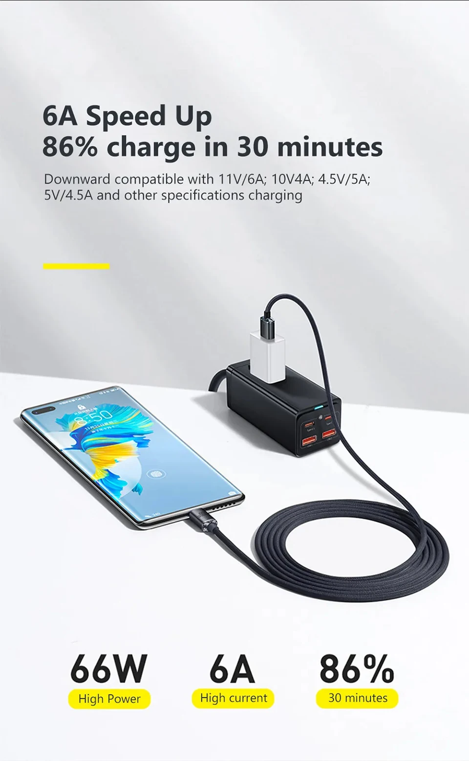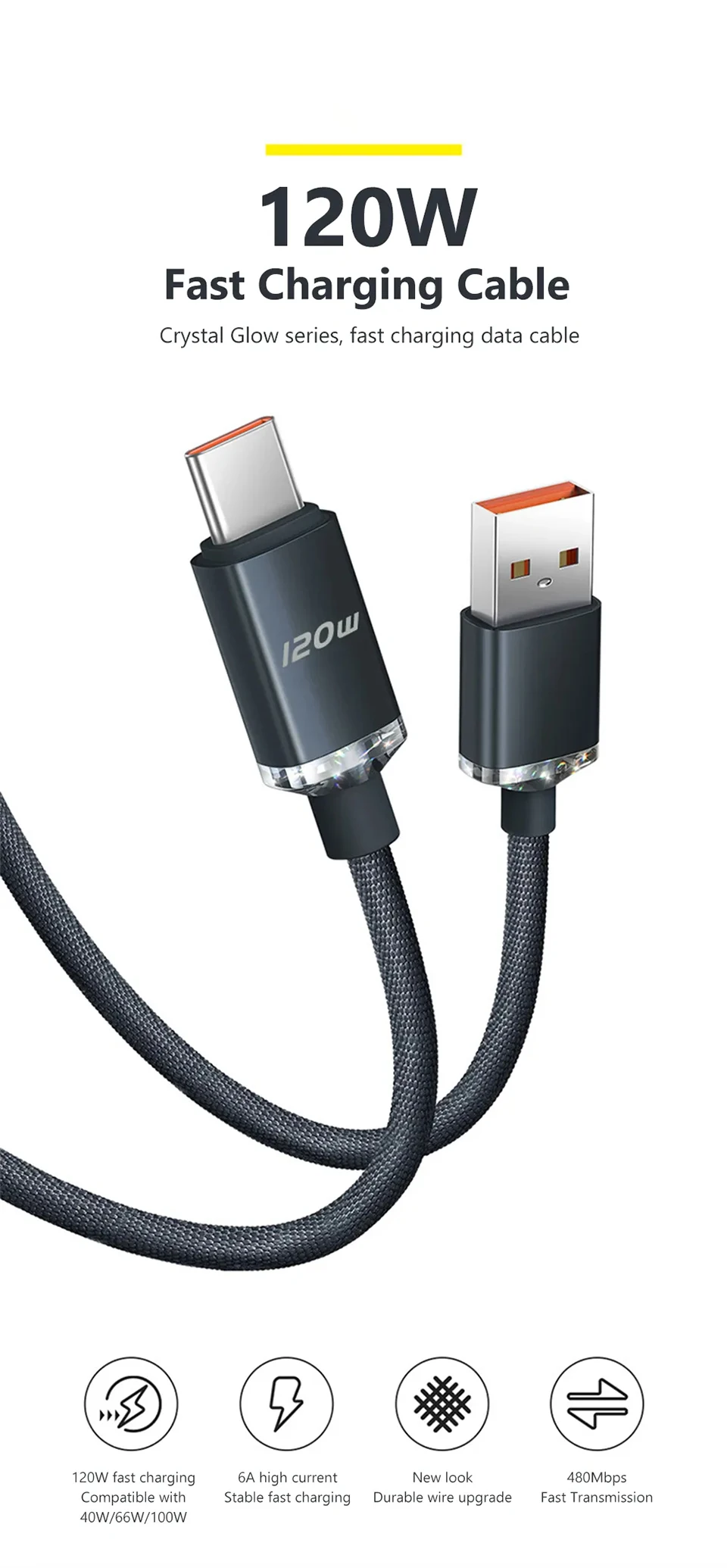 This 120W 6A USB Type-C cable offers quick charging and efficient data transfer for devices like Samsung S23, Realme, Xiaomi 13, and Huawei phones. Designed for high-speed performance, it ensures reliable and rapid charging for your devices.