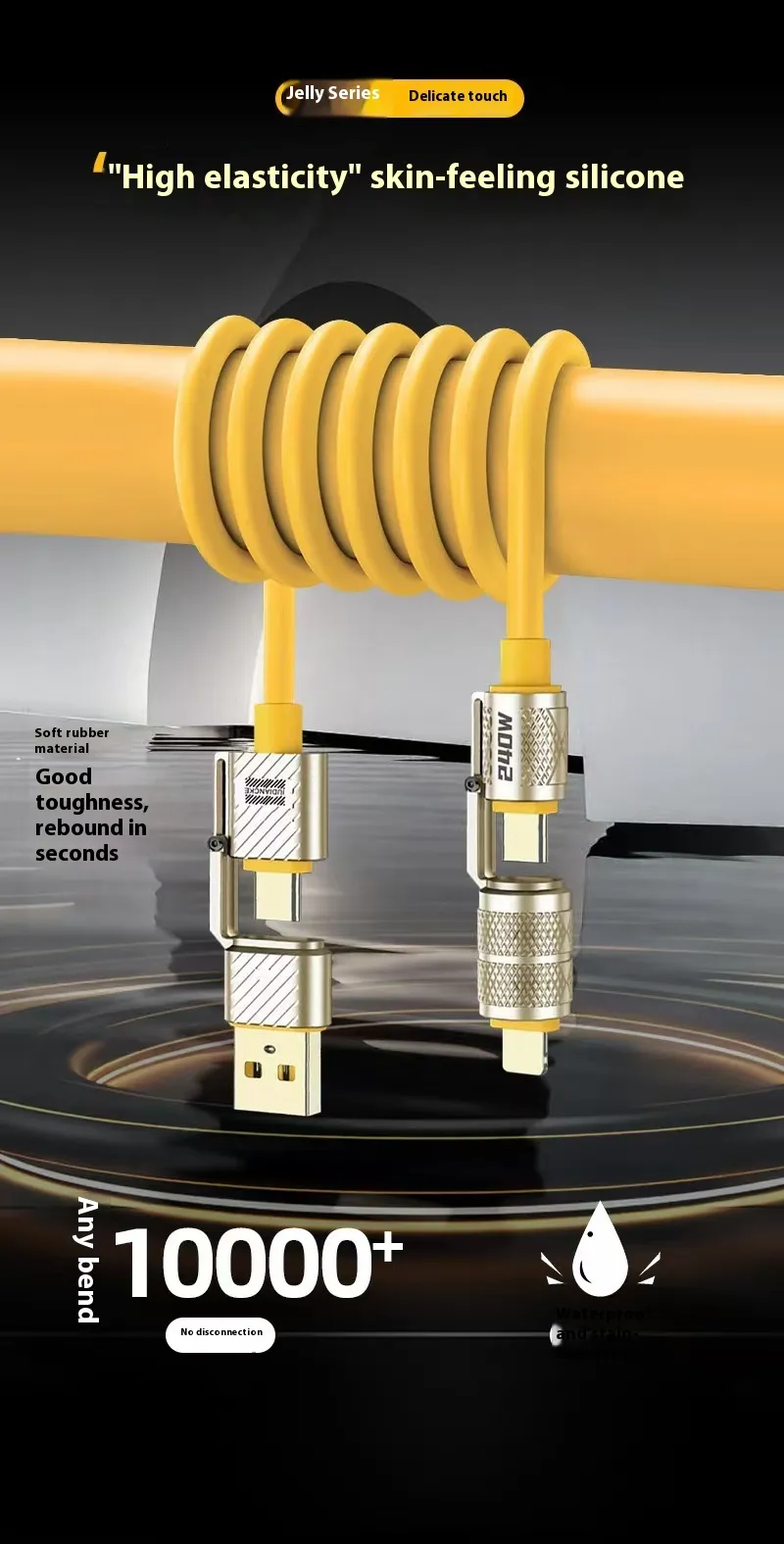 This innovative cable features a four-in-one interface, including dual Type-C connectors and multiple device compatibility. Switch easily between devices without the need for multiple cables, offering convenience for charging smartphones, tablets, laptops, and other electronic devices.