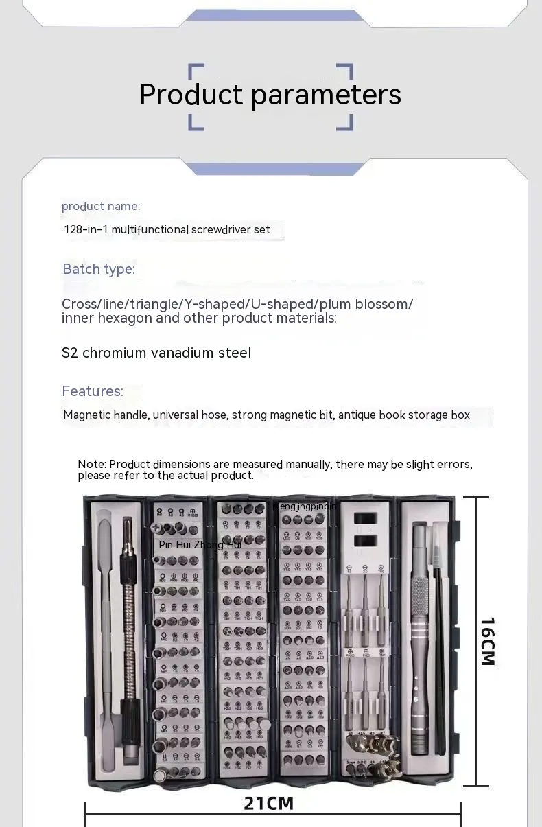 The 128 in 1 Screwdriver Set is a comprehensive tool kit designed to handle an incredibly wide range of fastening and repair tasks. Whether you are a DIY hobbyist working on home projects, a professional technician dealing with electronic devices, a mechanic performing precision work, or someone who simply wants a reliable all‑in‑one toolkit for everyday maintenance, this set covers your needs. Featuring an extensive collection of screwdriver bits, specialty drivers, adapters, and accessories, this screwdriver set empowers users to work confidently and efficiently across diverse tasks—from assembling furniture and tightening loose screws to repairing mobile phones, laptops, appliances, gaming consoles, and more.