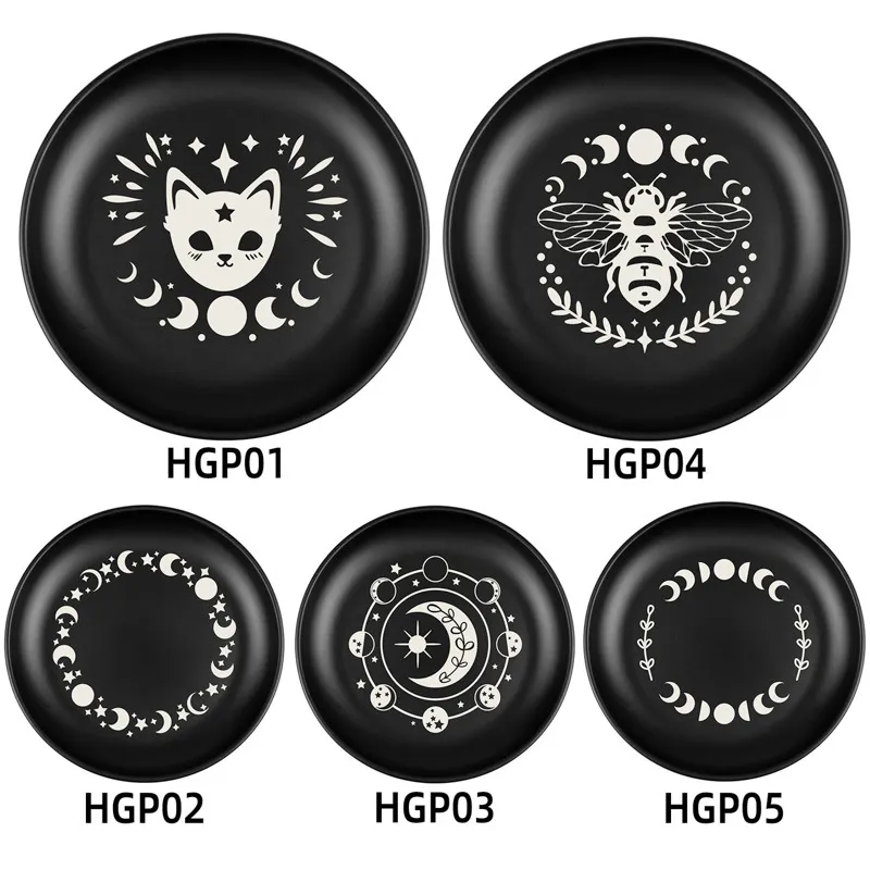 14cm Black Cat Stainless Steel Plate Candlestick Crystal Ritual Meditation