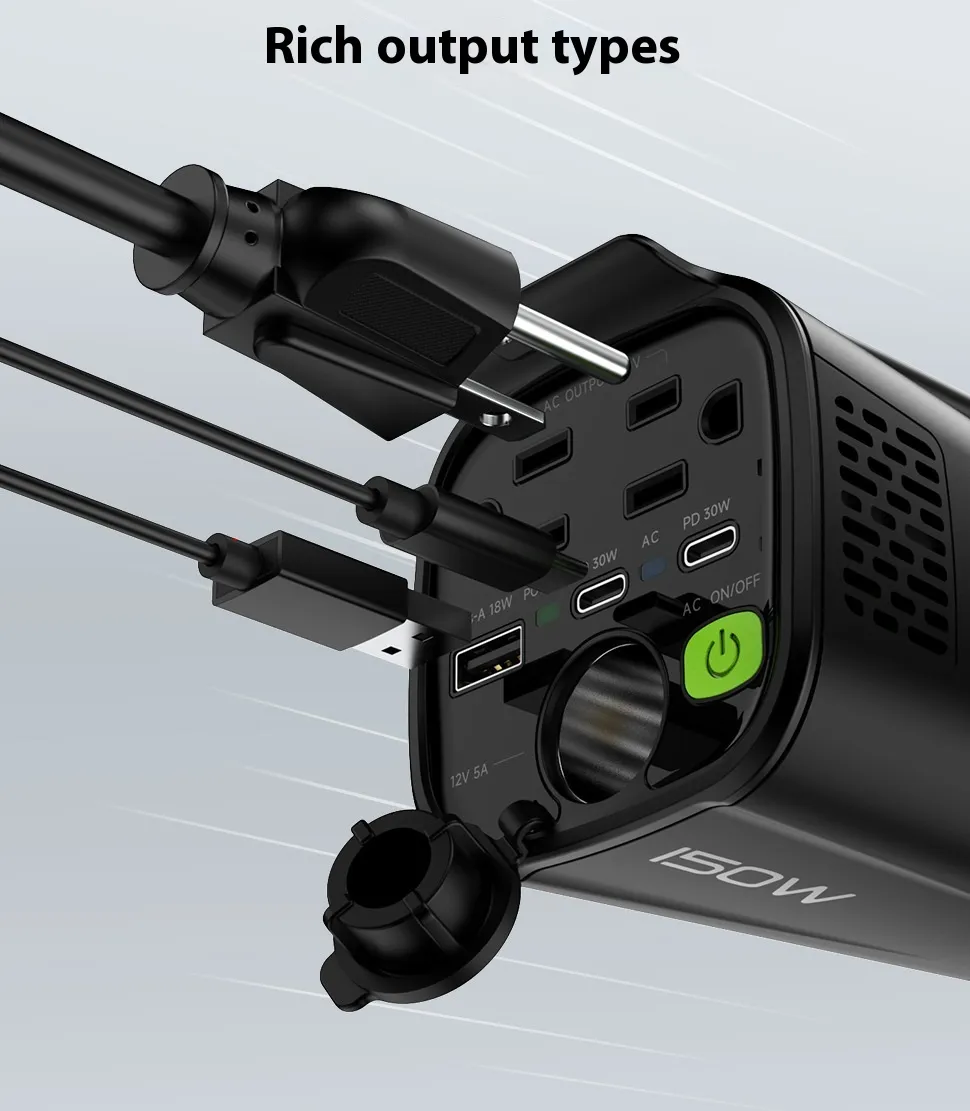 Whether you’re traveling for business or leisure, the 150W 12V to 110V Inverter Car Charger is an essential accessory for those who need to keep their devices powered while on the go. It’s particularly useful for outdoor enthusiasts, RV owners, and campers who need a reliable way to power their electronics in areas without traditional power sources.