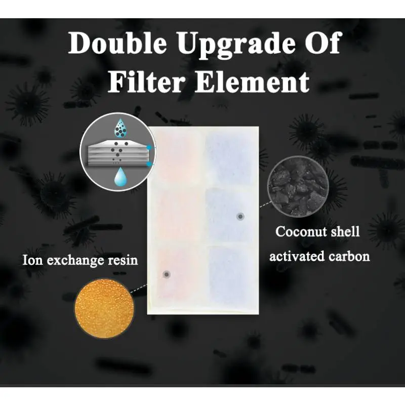 The 4-layer filter is designed to remove impurities, odors, and harmful chemicals, ensuring that your cat always drinks fresh and clean water. The filter system includes:
