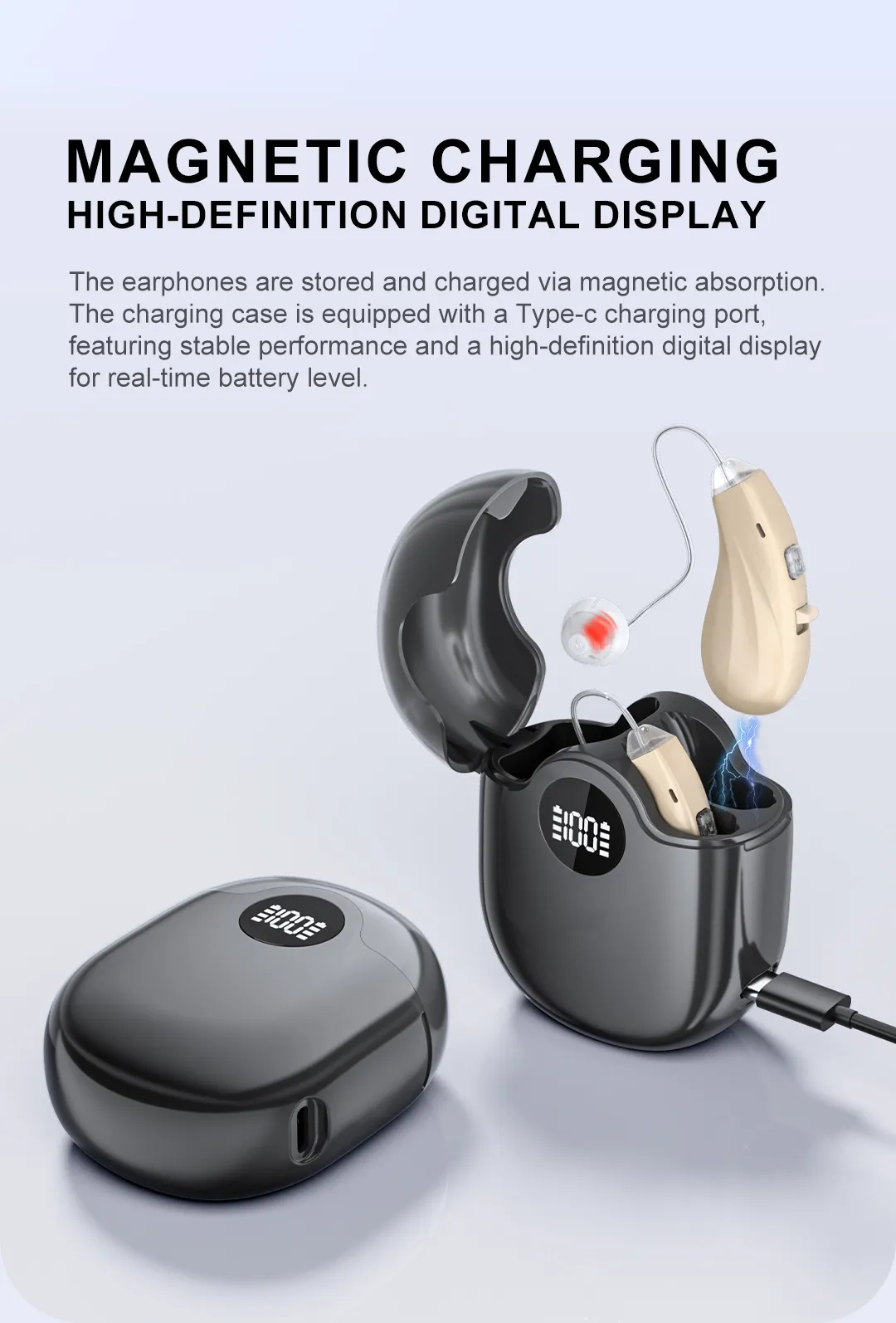 Equipped with a long-lasting rechargeable battery, this hearing aid eliminates the need for disposable batteries, making it eco-friendly and cost-effective. A full charge provides all-day usage, and the device is easy to recharge via a compact USB charging dock.