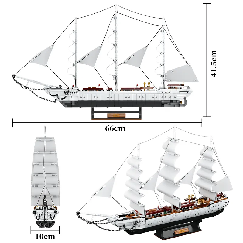 1672Pcs Sailboat White Swan Model Building Blocks DIY Boys Toys Gifts For Children
