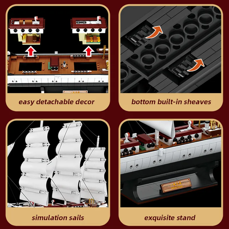 - Interactive Elements: Includes movable sails, a rudder, and realistic details.