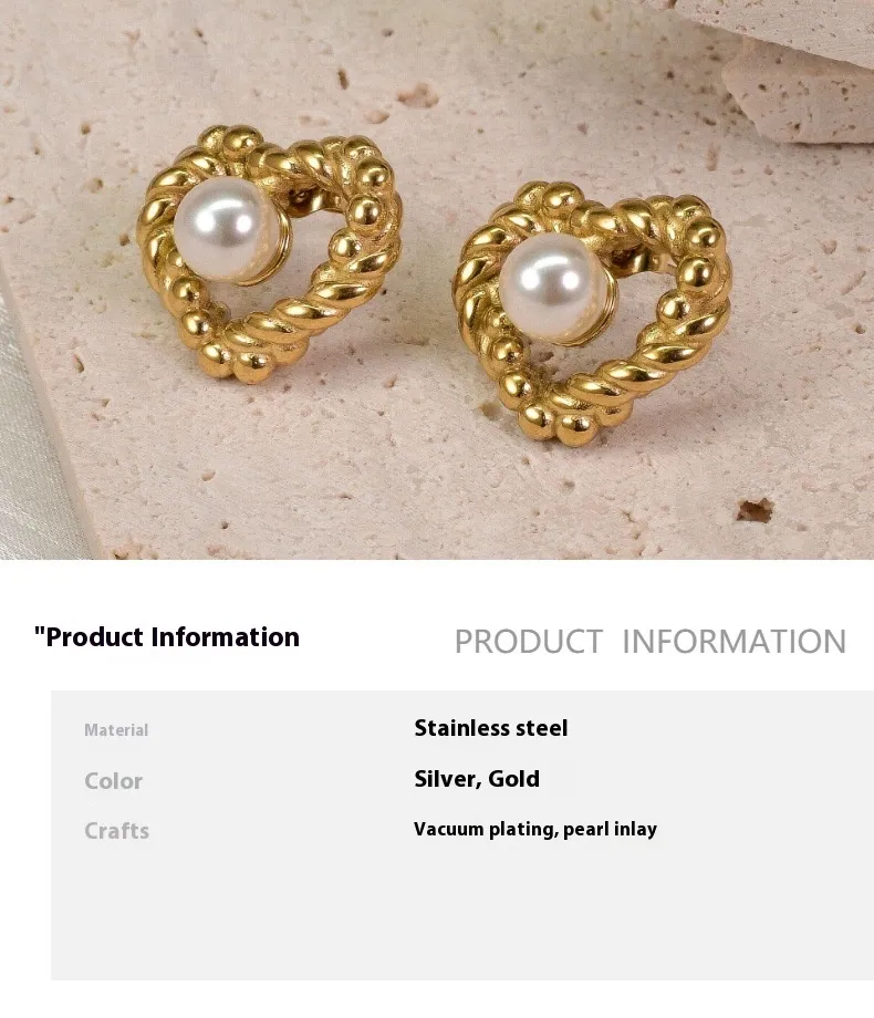 18K Fashion Retro Twist Pearl Heart-shaped Ear Studs