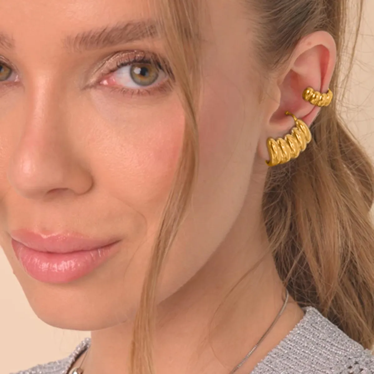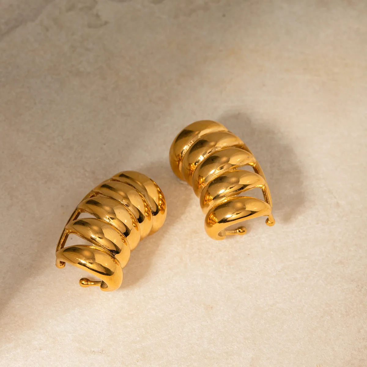 Ideal as a gift for birthdays, anniversaries, or any special occasion, these 18K Gold Stainless Steel Stripe Hollow Stud Earrings offer a