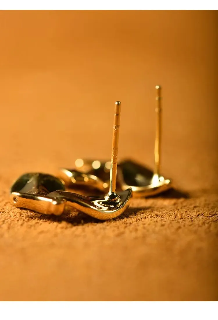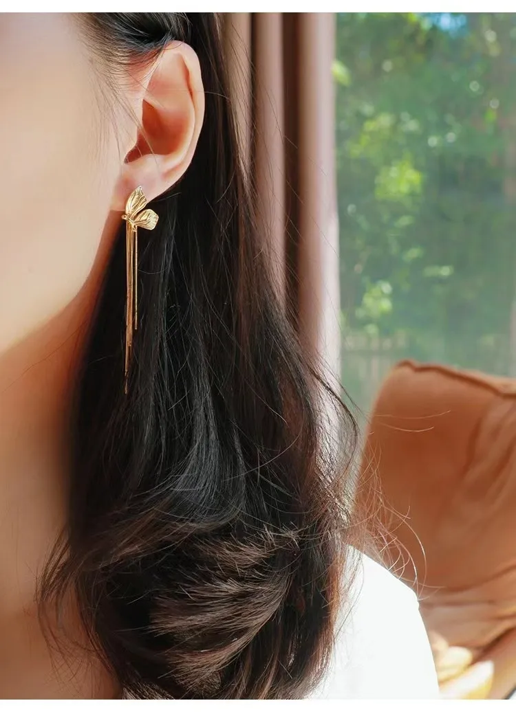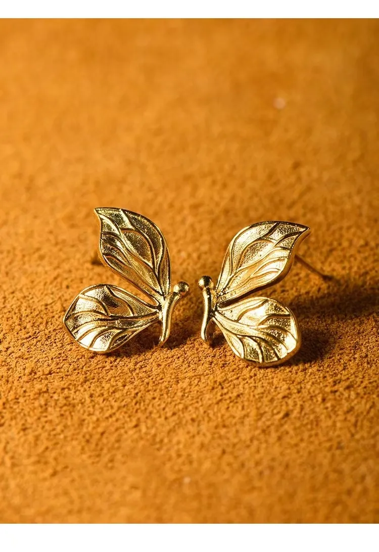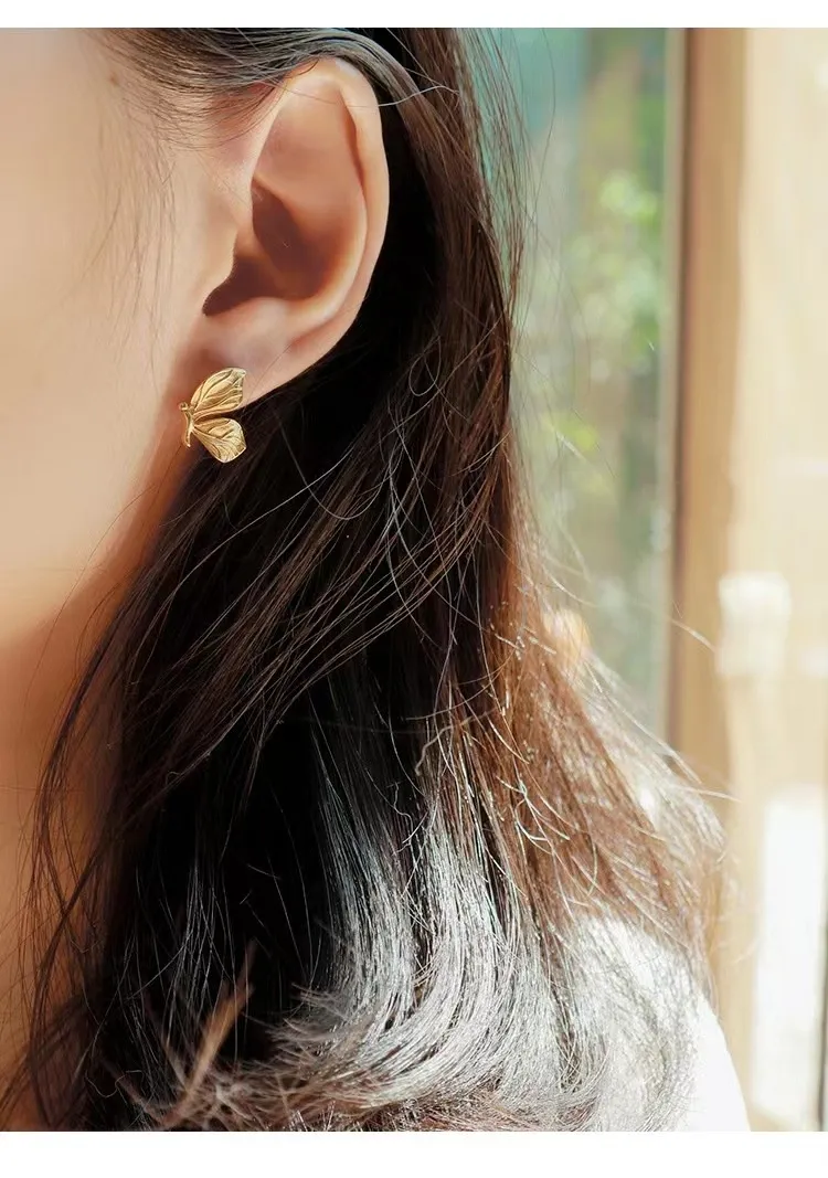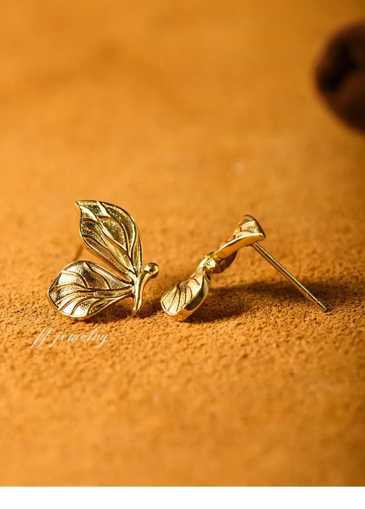18K Golden Butterfly Ear Studs Yellow Leaf Ear Studs Personalized Minority