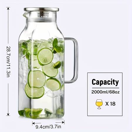 The 1pc 2000ml/68oz Square Glass Water Kettle with Lid and Spout offers the perfect blend of style and function. Its durable borosilicate glass construction ensures that it can handle both hot and cold drinks, making it a versatile addition to your kitchen. The modern square design and large capacity make it a standout piece at any gathering, while the practical lid and spout design ensure ease of use. Whether you're serving iced beverages on a warm day or hot drinks during a chilly evening, this kettle is the ideal choice.