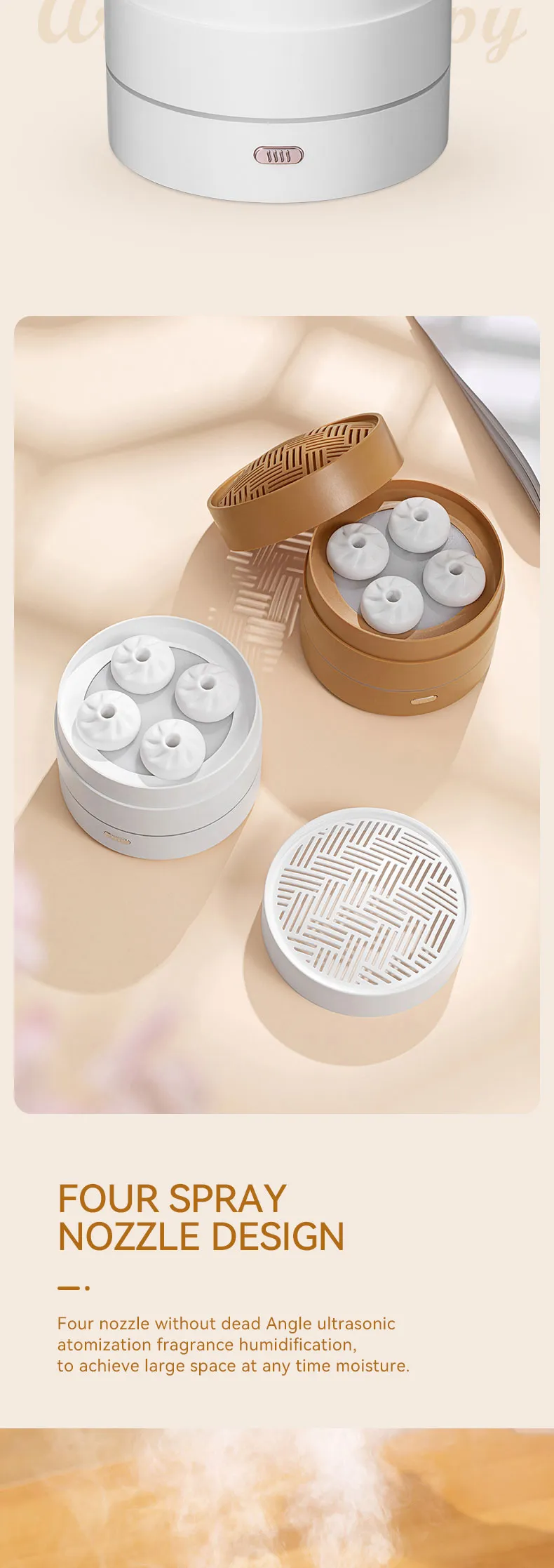 1pc Unique Four Spray Design Steaming Bun Aroma Diffuser 200ml USB Ultrasonic Air Humidifier LED Night Light Essential Oil Diffuser Aromatherapy Diffuser For Home Office