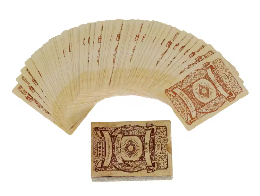 The cards feature a retro design that adds an element of sophistication and charm. The muted colors, aged appearance, and vintage typography make this deck a standout piece for collectors and players alike.