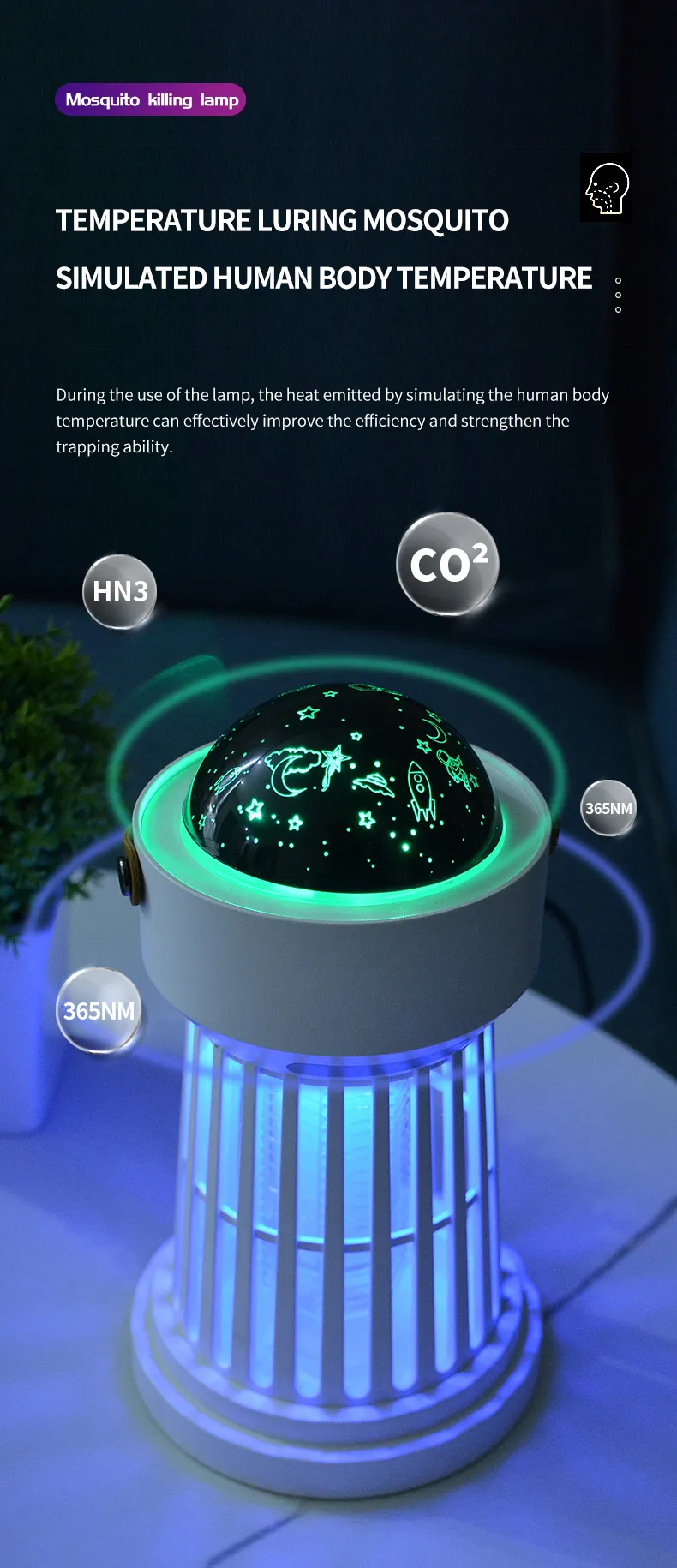 2 In 1 Electric Mosquito Killer Lamp Star Ceiling Projection Kill Mosquitoes For Outdoor And Indoor
