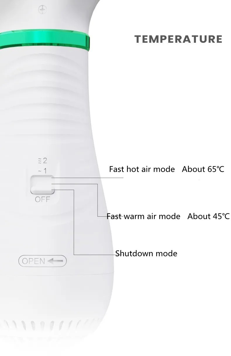 A variety of combing styles are suitable for different use requirements. Tuyere temperature: about 45 degrees for low-end and 65 degrees for high-end. 30mm away from the tuyere, about 45 degrees for