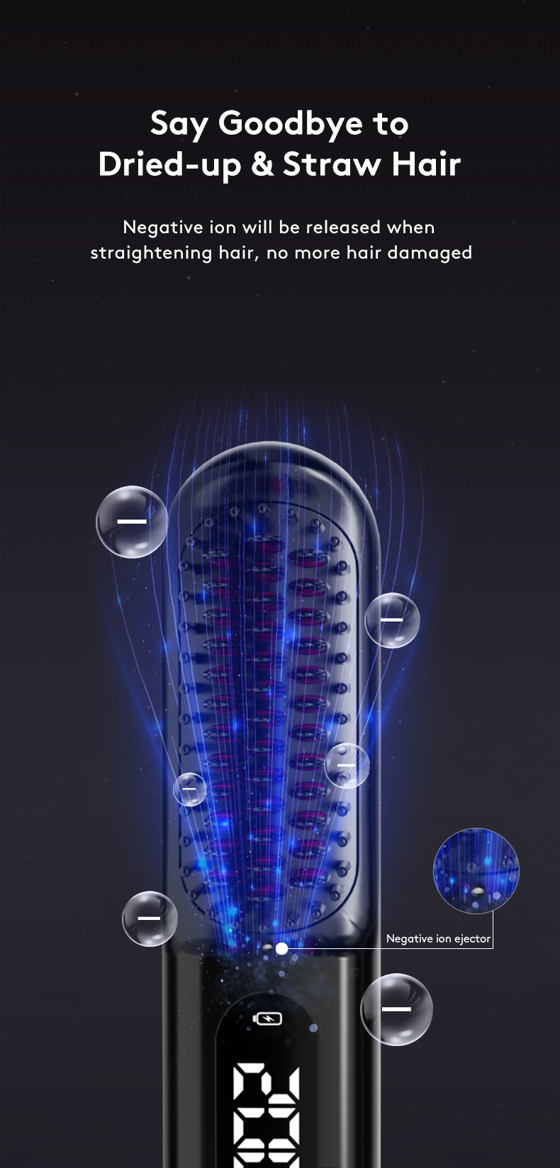 Effortless and Efficient Styling: Our wireless hair straightener brush features advanced heating technology that quickly reaches your desired temperature.