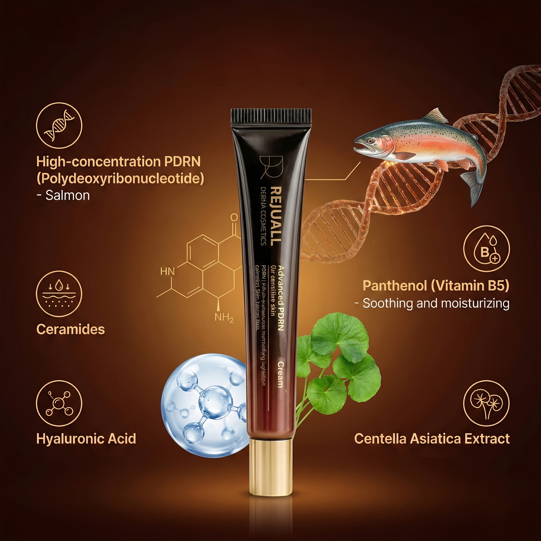 2 pcs REJUALL Advanced PDRN Cream (Salmon PDRN) Ceramides + Hyaluronic Acid + Panthenol (Vitamin B5) + Centella Asiatica