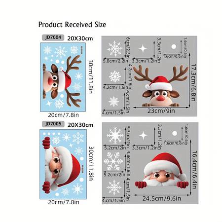 Description – 2 Sheets Cute Christmas Window Clings