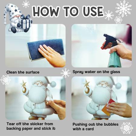 The self-adhesive backing makes them simple to apply to glass surfaces such as windows, mirrors, sliding doors, shower screens, and display panels. They peel off cleanly and can be reused each season, making them affordable and perfect for decorating rooms, shops, and home holiday setups.