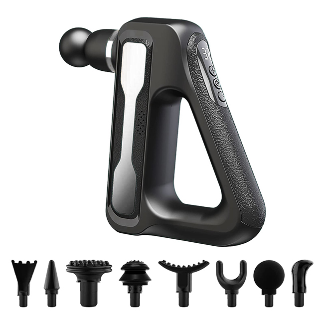 target specific muscle groups. Whether you’re massaging your back, legs, shoulders, or arms, the massage gun’s compact shape and intuitive