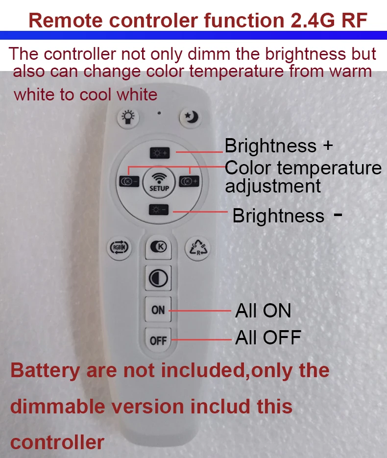 2.The dimmable item not only brightness dimmable but also color tempreture adjustable!(with 2.4g RF controler)