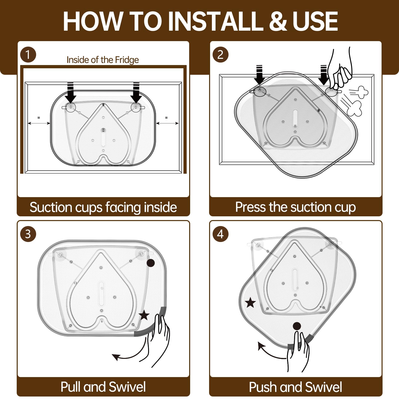 This latest fridge turntable organizer is super easy to install in seconds without any tools, fastening quickly and easily to the surface using suction cups and the included instructions. Sturdy and Durable: Crafted from premium clear acrylic and durable PET materials, this lazy susan for countertop is built to last without deformation, making it easier to quickly see and grab items inside.