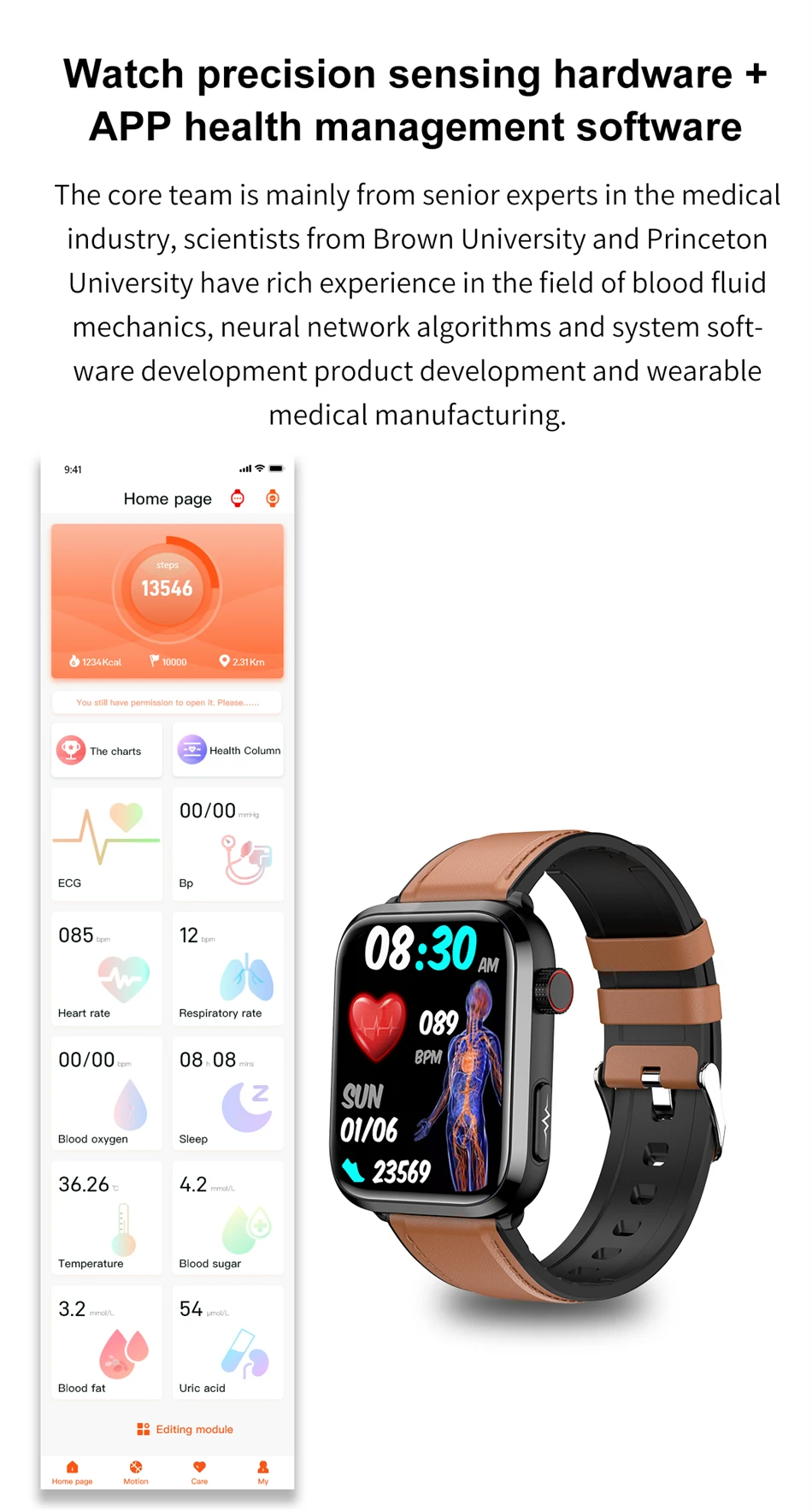 - Health Sensors: ECG, PPG, blood glucose, blood lipids, uric acid monitoring