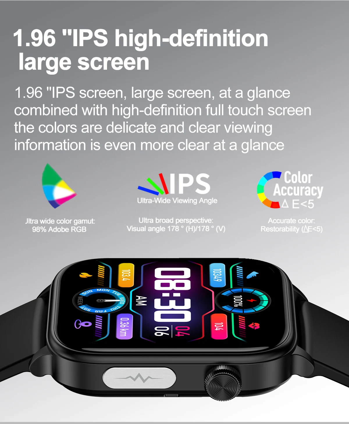 - Display: High-definition touch screen with customizable watch faces
