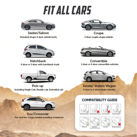 Our seat covers are designed to fit most vehicles including cars, trucks, sedan, vans and SUVs. Rear seat cover designed to accommodate 50/50, 40/60, 60/40, and 40/20/40 split benches.