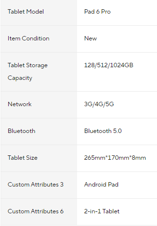 The 2024 Pad 6 Pro Android Tablet PC features an 11-inch display and runs on Android 12. Available in configurations of 10GB/12GB/16GB RAM and 256GB/512GB/1TB storage, it supports 5G dual SIM phone calls, GPS, Bluetooth, WiFi, and Google services, making it a versatile and powerful device for all your needs.