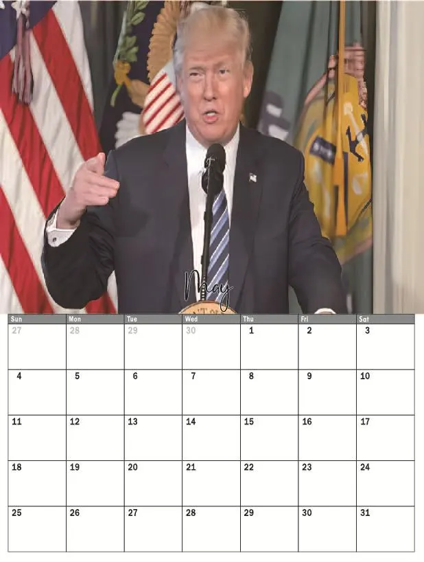- Monthly Humor: Each month features a new, funny image or quote from Donald Trump, capturing the spirit of his time in office and beyond. Whether it’s a memorable moment from his speeches or a funny meme, there’s plenty to laugh about every month.
